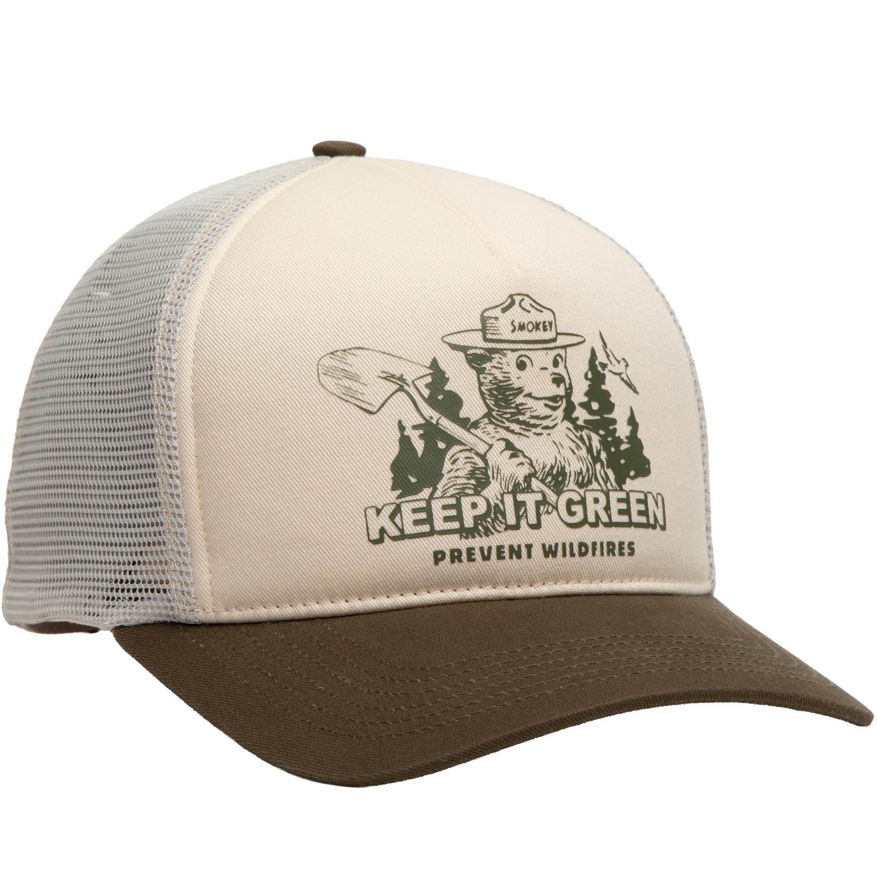 A go anywhere trucker with a nod to the forest’s most familiar face. The Keep It Green Hat blends classic mesh back comfort with Smokey Bear heritage for a look that fits right into your warm weather rotation.